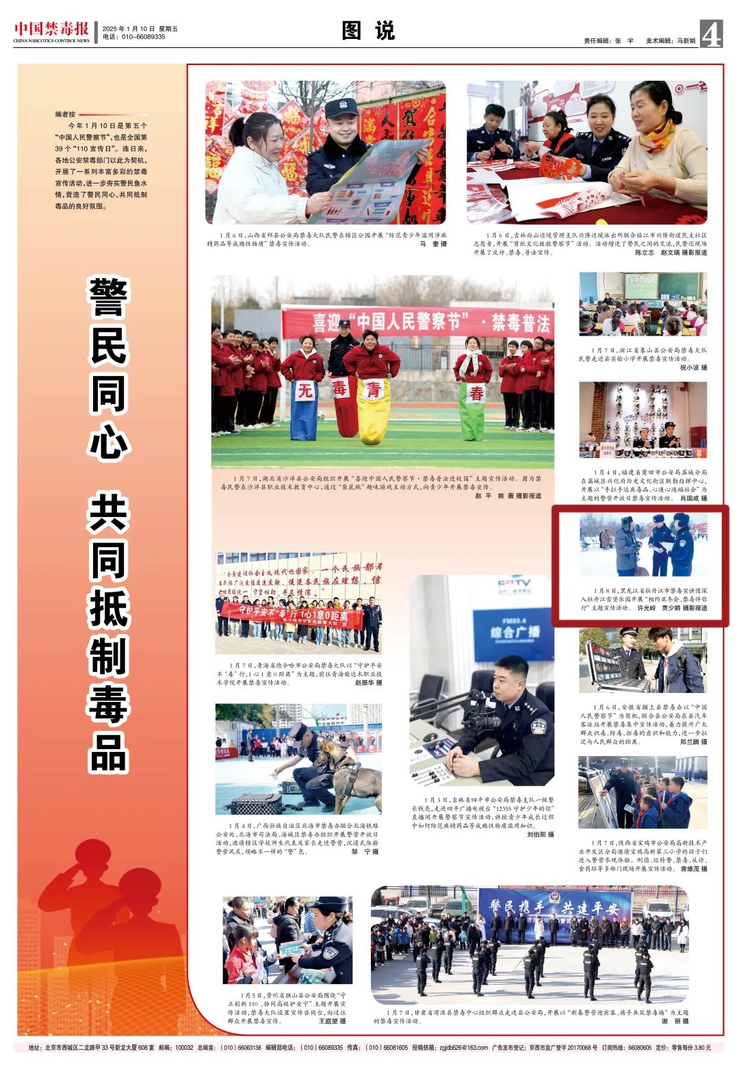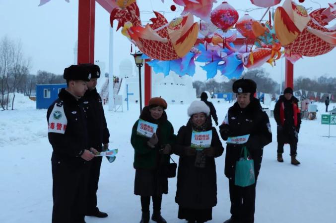 为深入开展“冬季行动”,全力做好亚冬会禁毒安保工作,切实提高广大人民群众的禁毒意识,1月7日,牡丹江市禁毒宣讲团在“110警察节”来临之际,深入牡丹江第24届雪堡乐园开展“相约亚冬会、禁毒伴你行”主题宣传活动。